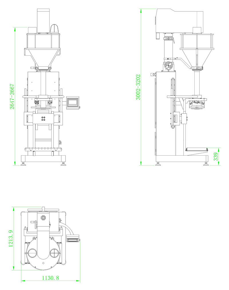 工作流程:人工套袋或人工放罐 → 容器升高 → 快速充填,同時(shí)容器下降 → 重量達(dá)到預(yù)量值 → 慢速充填 → 重量達(dá)到目標(biāo)值 → 人工取出容器。